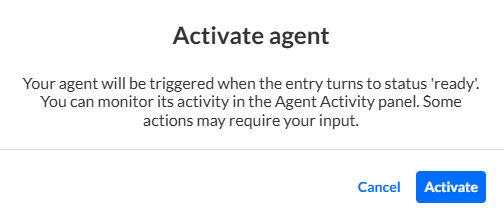 - Agents with automatic triggers (for example, when media is uploaded or when media enters a category) need to be activated. Once activated, they run automatically whenever the trigger condition is met.