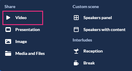 If you access the media selector from within your Video Portal or Events platform, the window displays two tabs:
