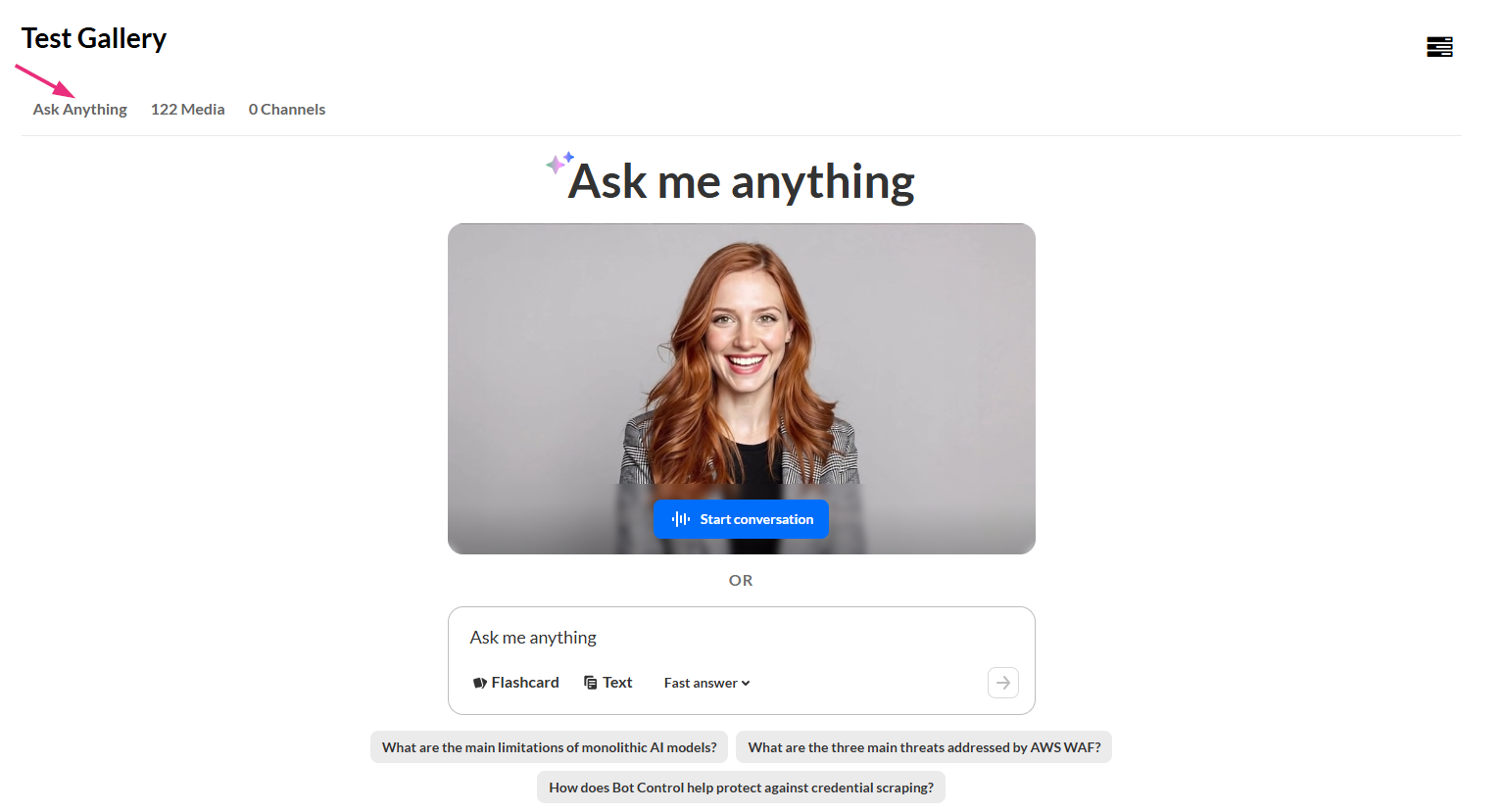 If Agentic Avatars are enabled for your Genie configuration, users can also start a live avatar conversation within the gallery’s Genie experience.