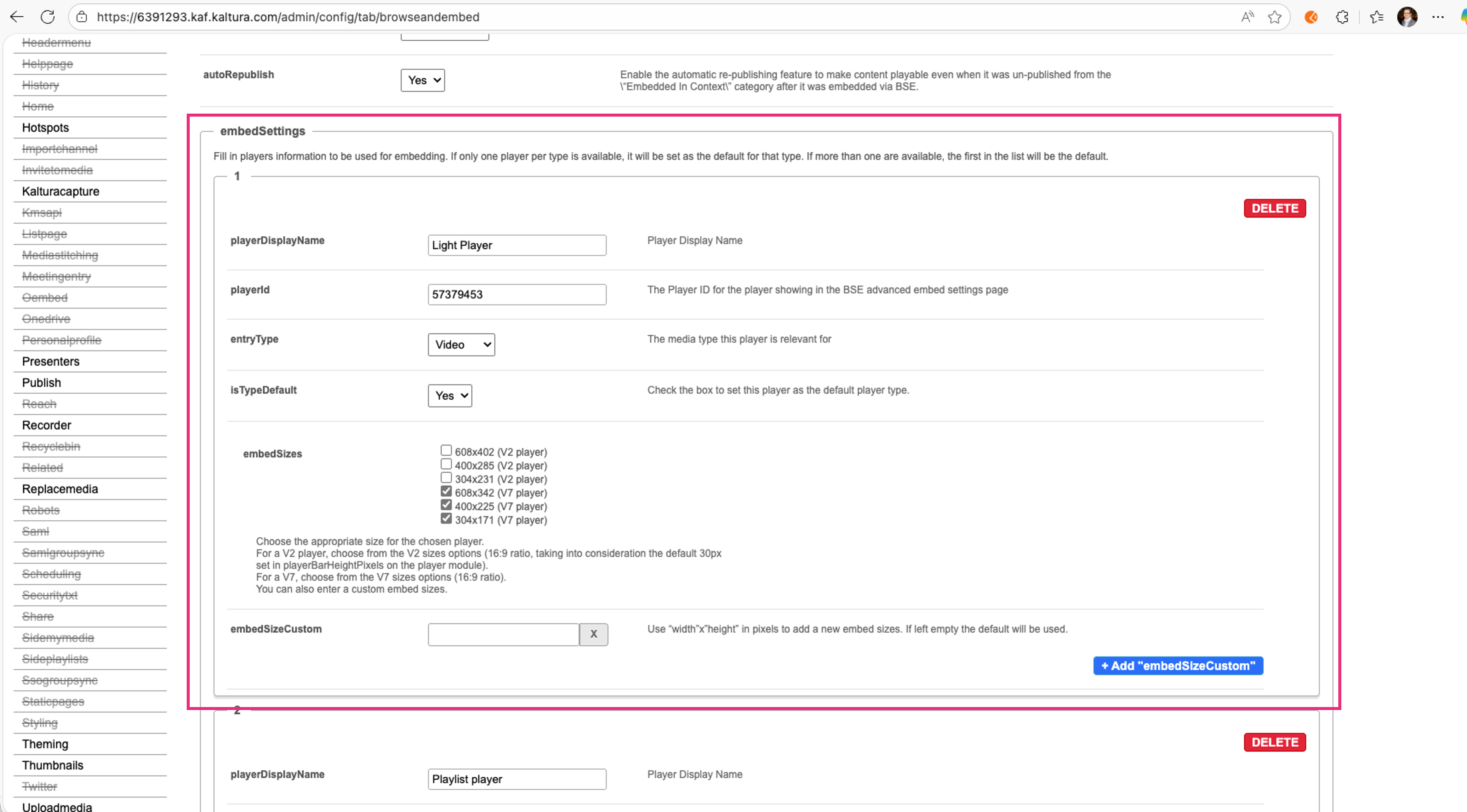 To provide AEM authors with a choice of players, administrators must first create their players in the Kaltura Player Studio and then add them to the Browseandembed module in their Configuration Management console.