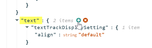 - In the Advanced Settings editor, hover over "text" and click the green + icon.