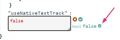 - In the box, enter useNativeTextTrack and click the green check mark or press 'enter'.