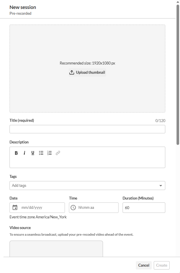 This article describes how to add a Pre-recorded session to your multi-session event.
