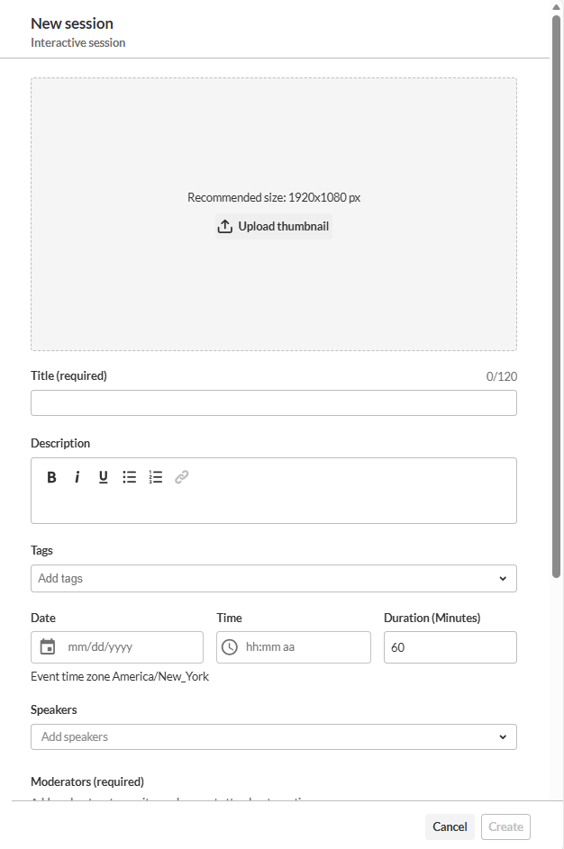 - Fill in the required fields and any additional information you want to display on the agenda (see the section below for details).
