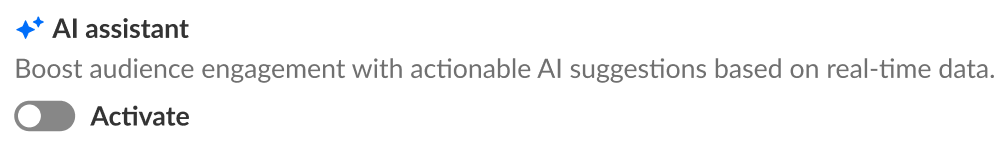- The Assistant tab displays for moderators in the Chat and Collaboration widget. The Assistant tab provides information on attendee numbers, chat mood (results of sentiment analysis), engagement rate (viewers who watch in full screen or with the focus on the tab and sound on), and time to end.