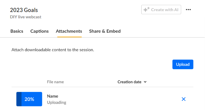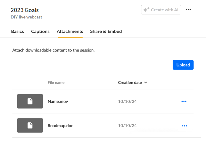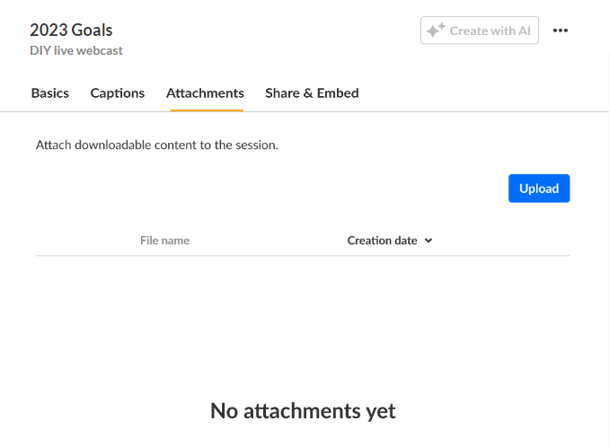 Select DIY live webcast. The New session DIY live webcast screen displays.