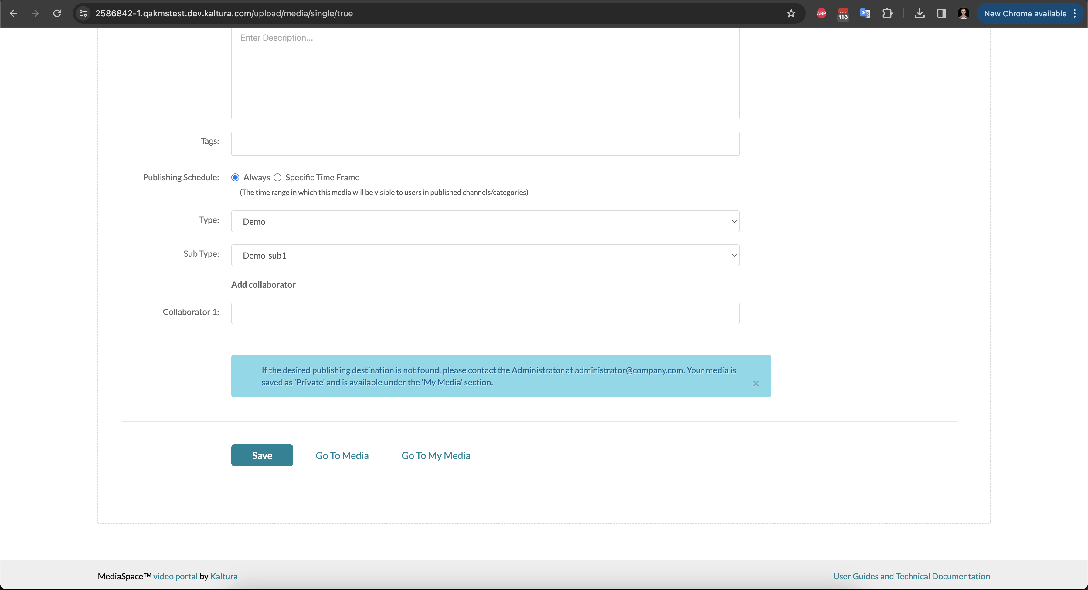 - Publish button removed from My Media