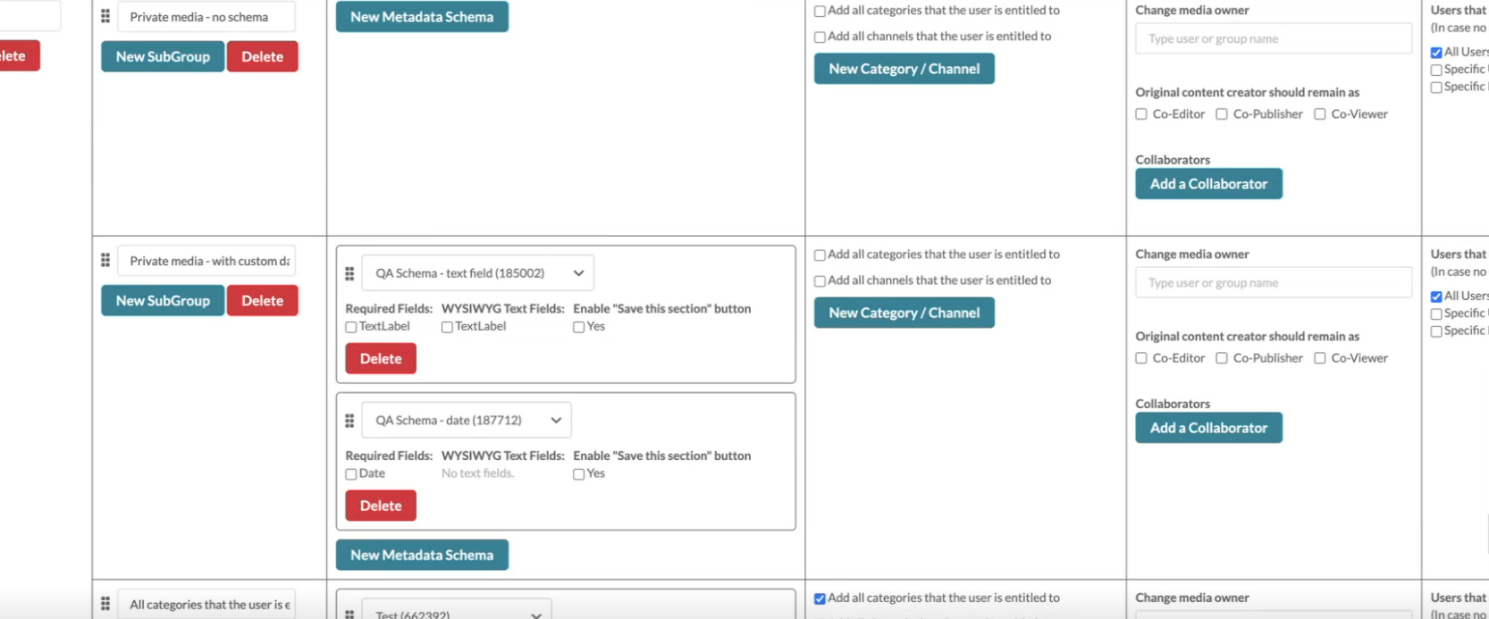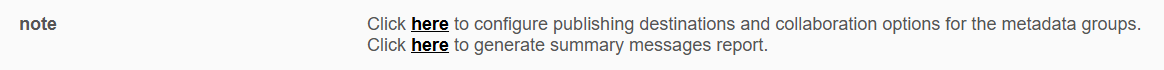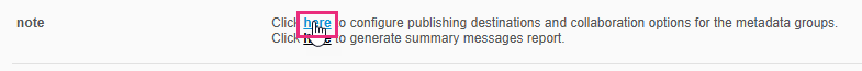 Configure publishing destinations and collaboration options for the metadata groups