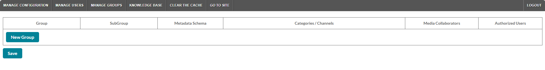 If no groups have been created, a blank admin screen displays. Click the New Group button.