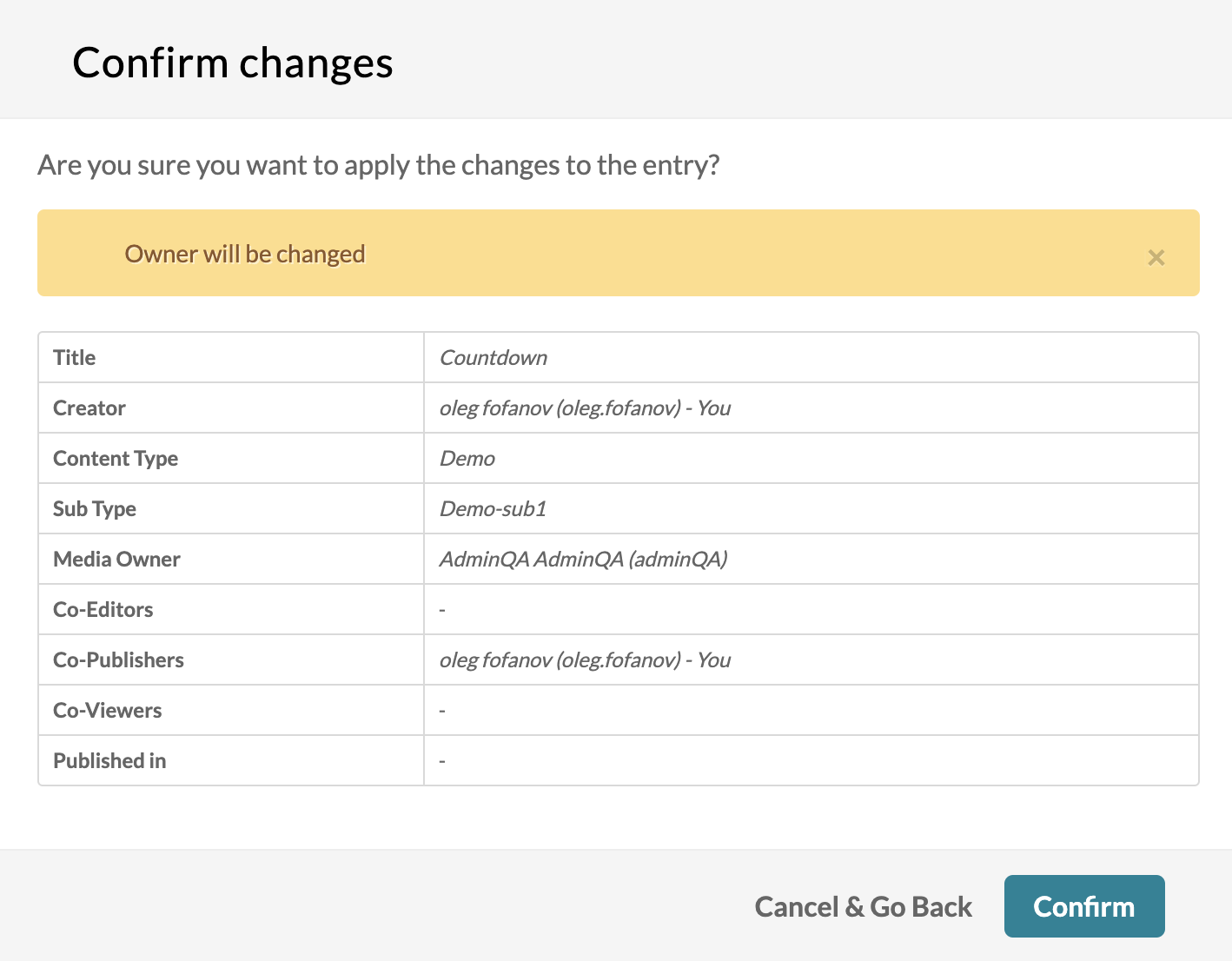 Change owner of an entry - Confirm changes
