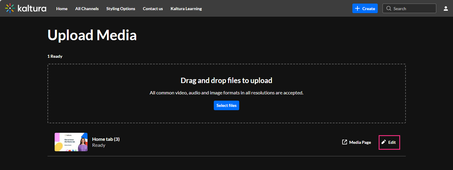 Administrators can enable and configure the AHK General module, thus helping to streamline the media upload experience. When this module is enabled, the upload process is customized so the end user only sees the fields and options that are relevant to them. Helpful, customized messages may appear on the upload page and on the media details page to guide the end user as they add or edit content. Please note - your screens may look different from those shown in this guide, depending on how your administrator has configured them.