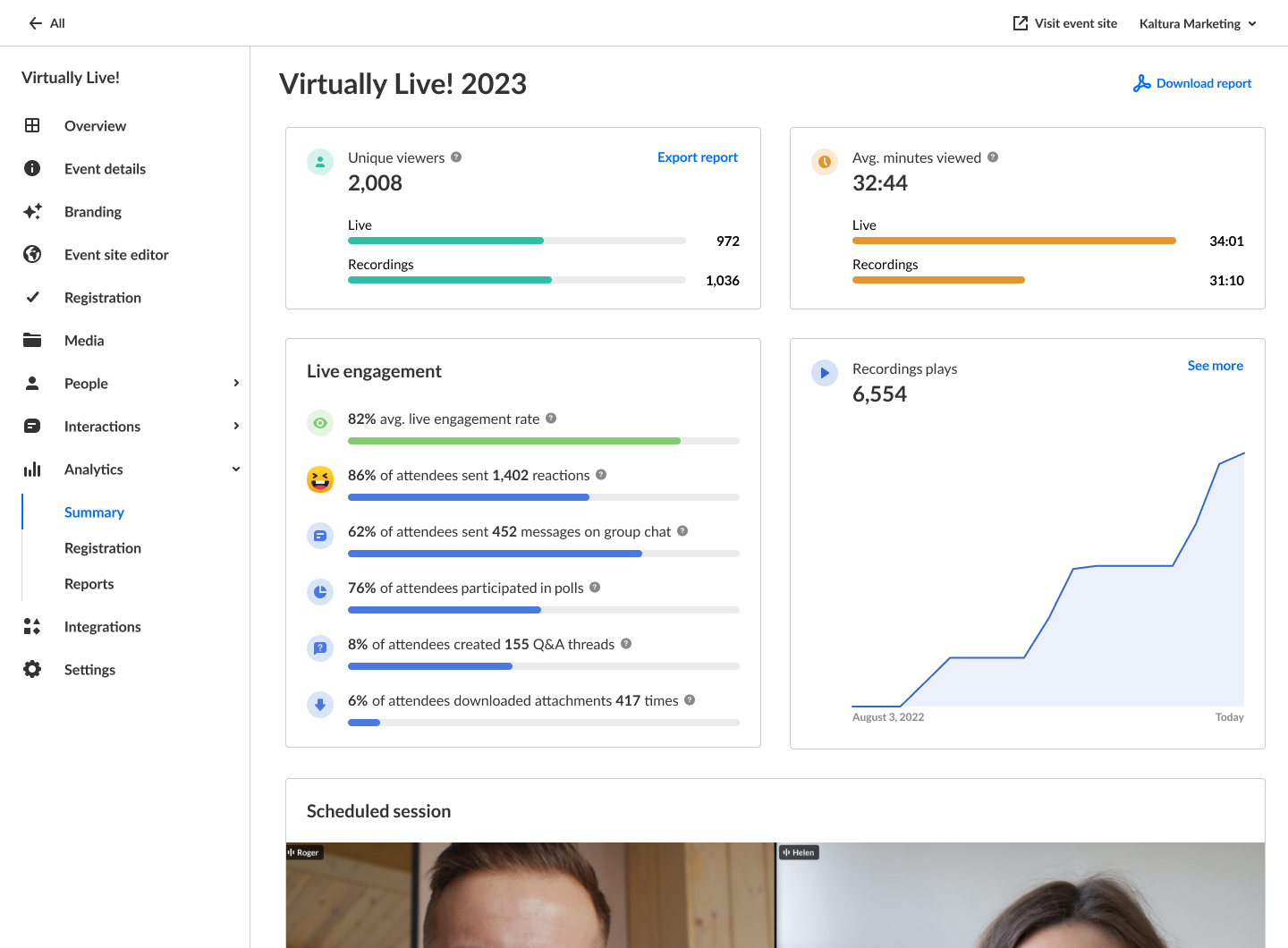 Unique viewers - Number of unique users that viewed the live session or the recording.