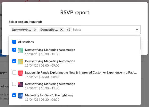 For the RSVP report, you are prompted to choose a session, then you may generate the report.