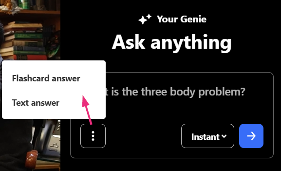 After a few seconds, your answer appears as flashcards or text, depending on your question / selected format.