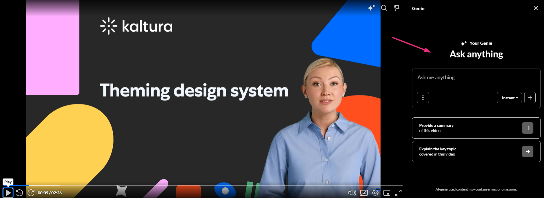 If Genie doesn’t appear, the video may not have captions, the feature may be turned off for your account, or you may not have the required permissions to access Genie.