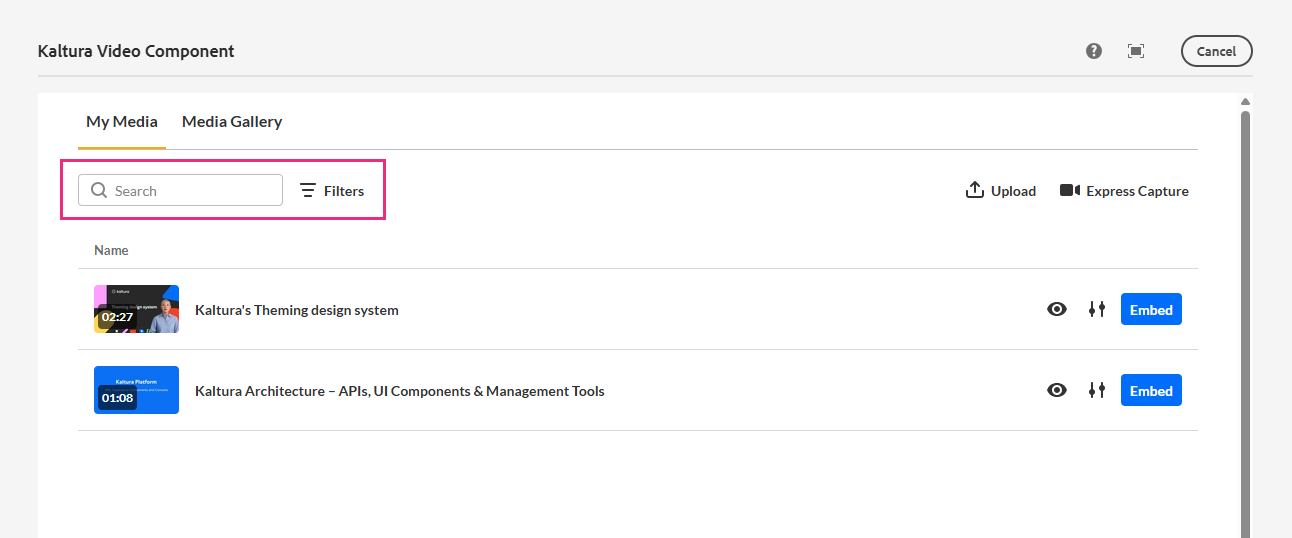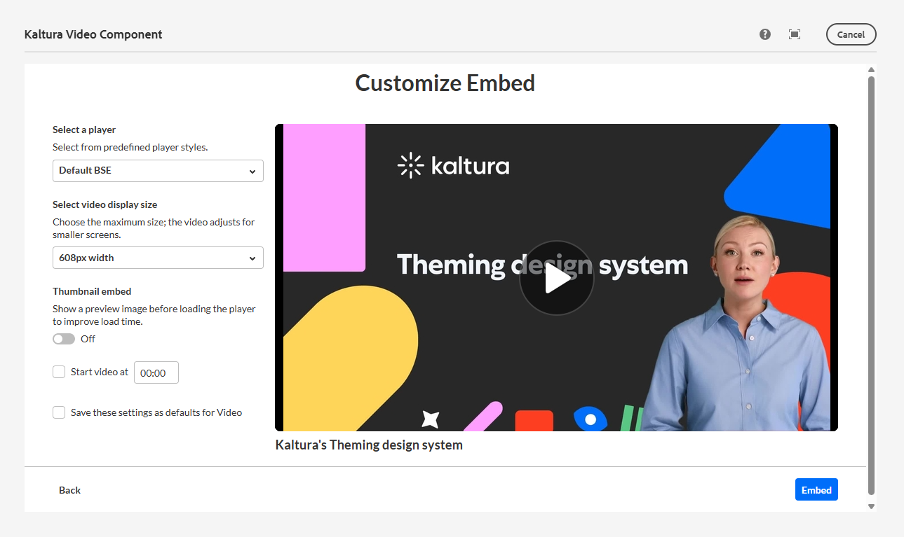 This article explains how Webmasters embed videos on AEM pages using the Kaltura Video component.