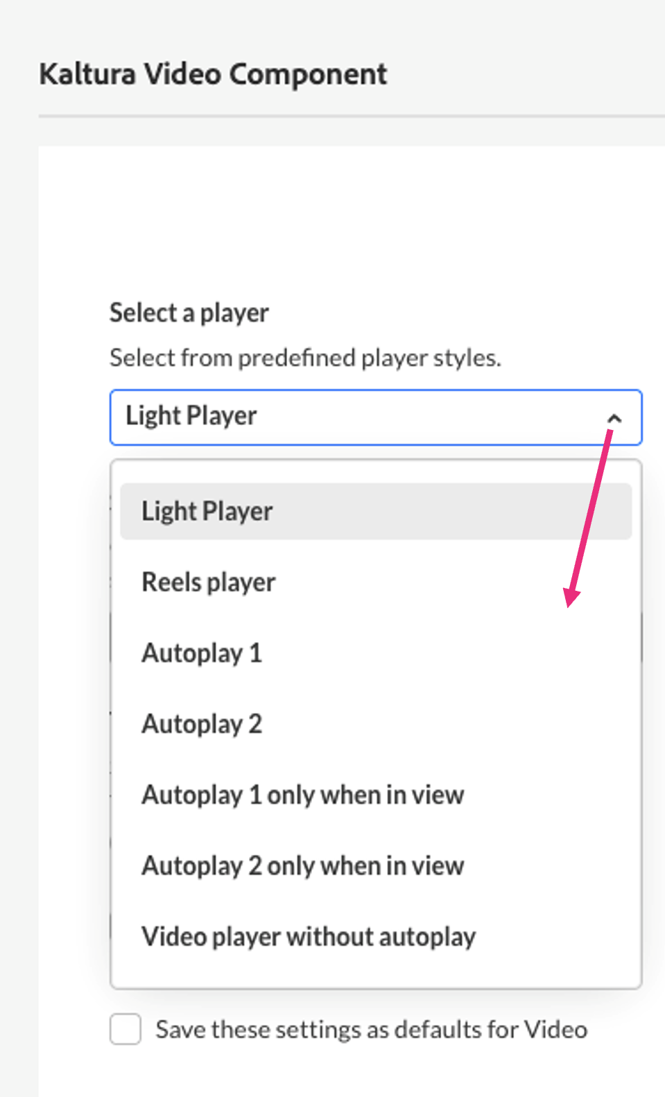 Save these settings as defaults for videos - Enable this option to apply the same settings automatically to future embeds of this media type.