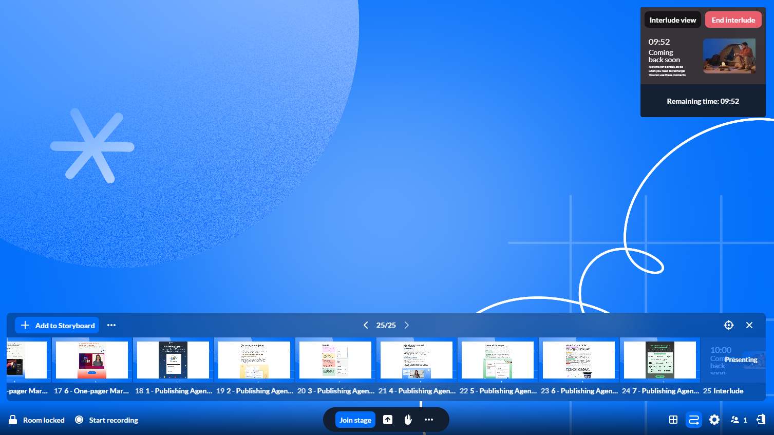 - Interlude view: Shows the screen exactly as attendees see it.