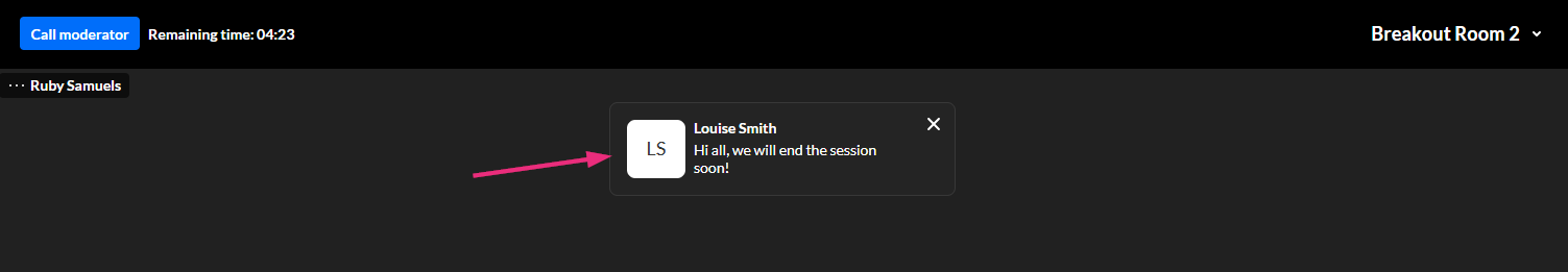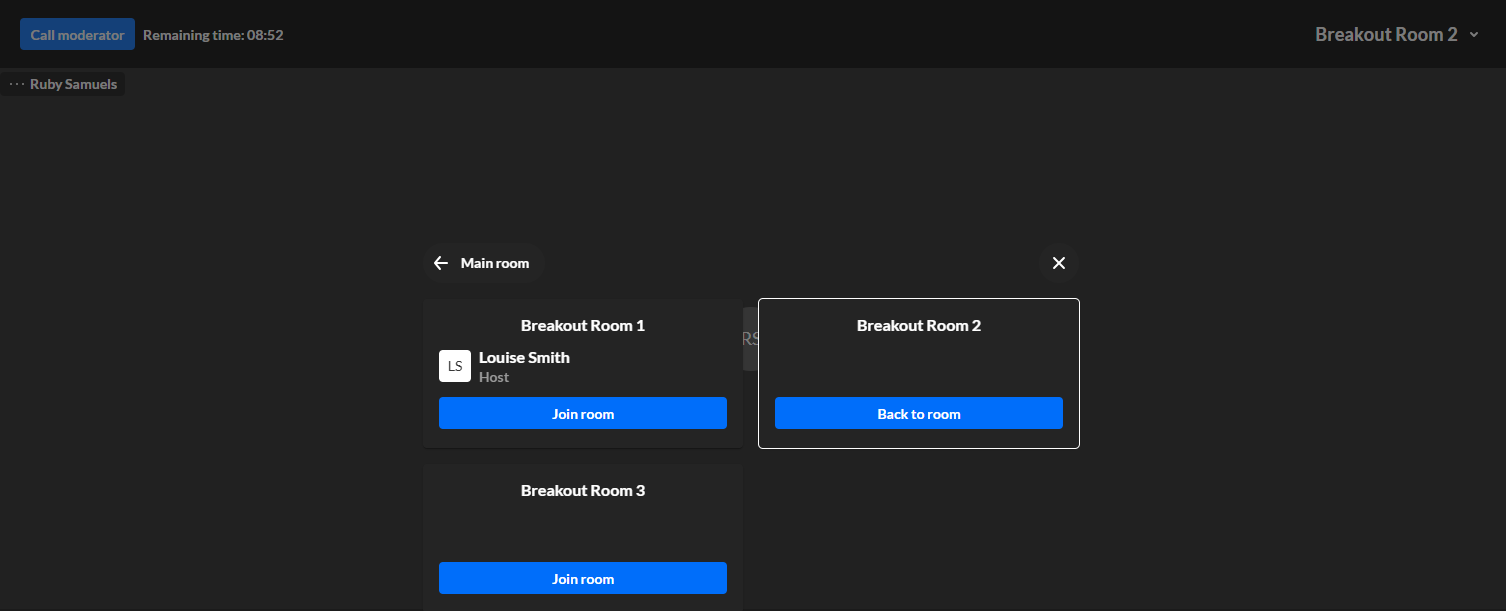 The moderator can also move participants between rooms during the session. If this happens, you will see a countdown before entering the new room.