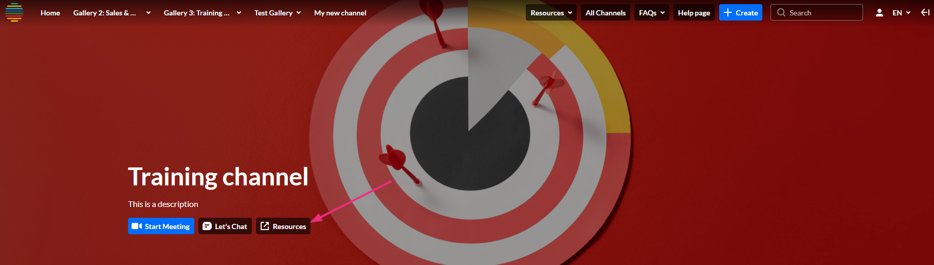 Channel header with link to 'Resources'Visible sections