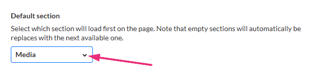 Use Default section to choose which section loads first when users open the channel.