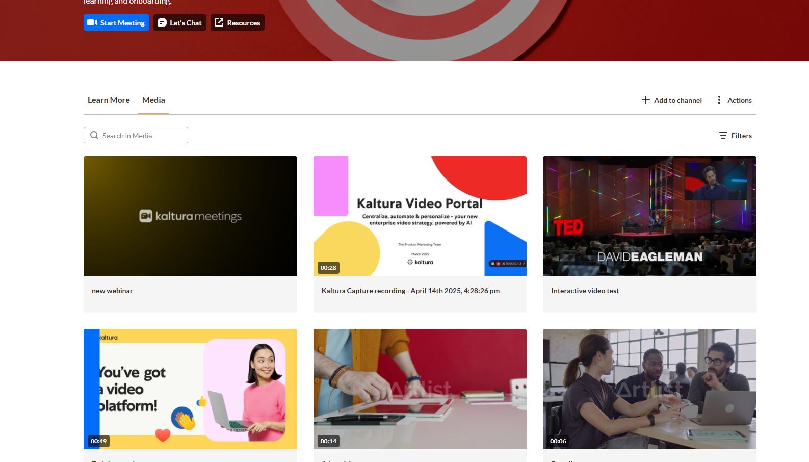 Use Media view mode to choose how media items are displayed in the channel.