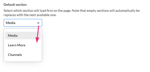 - The default section must be a visible section (a section may not be visible if it’s turned off, has no content, or isn’t enabled on your site).