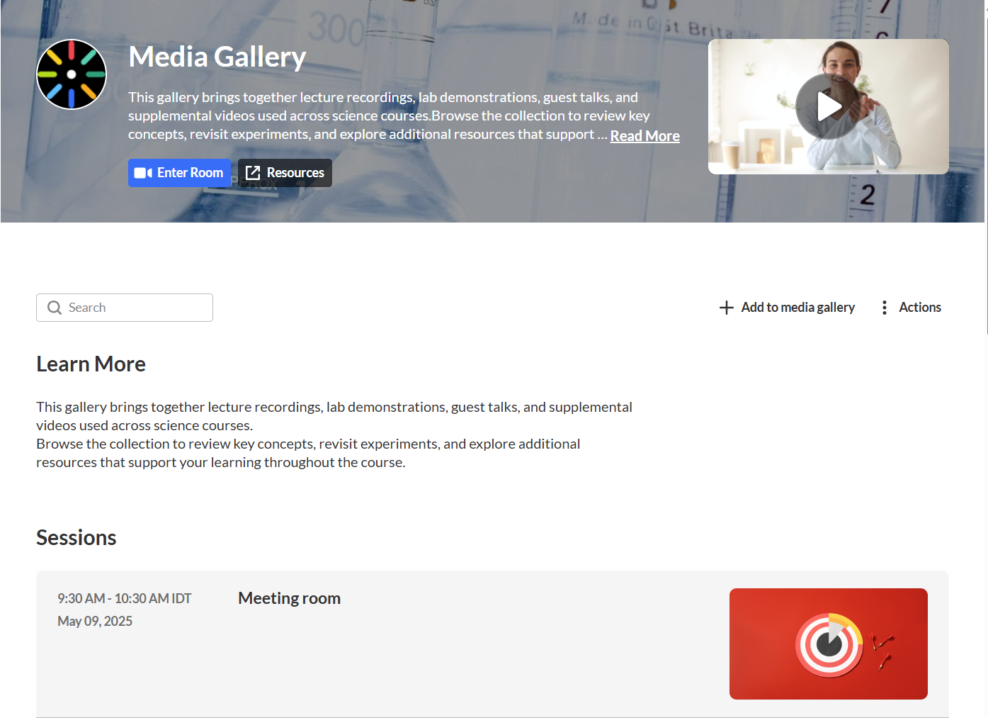 - If the selected section has no content, the media gallery opens to the next available section automatically.