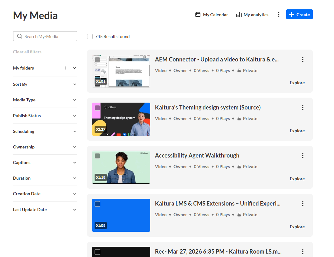 If you don’t see your 'My Media' content or editing tabs, contact your administrator to ensure you have the required permissions.
