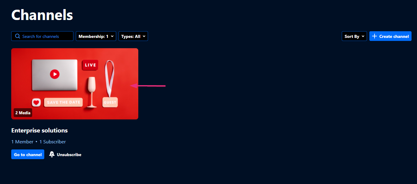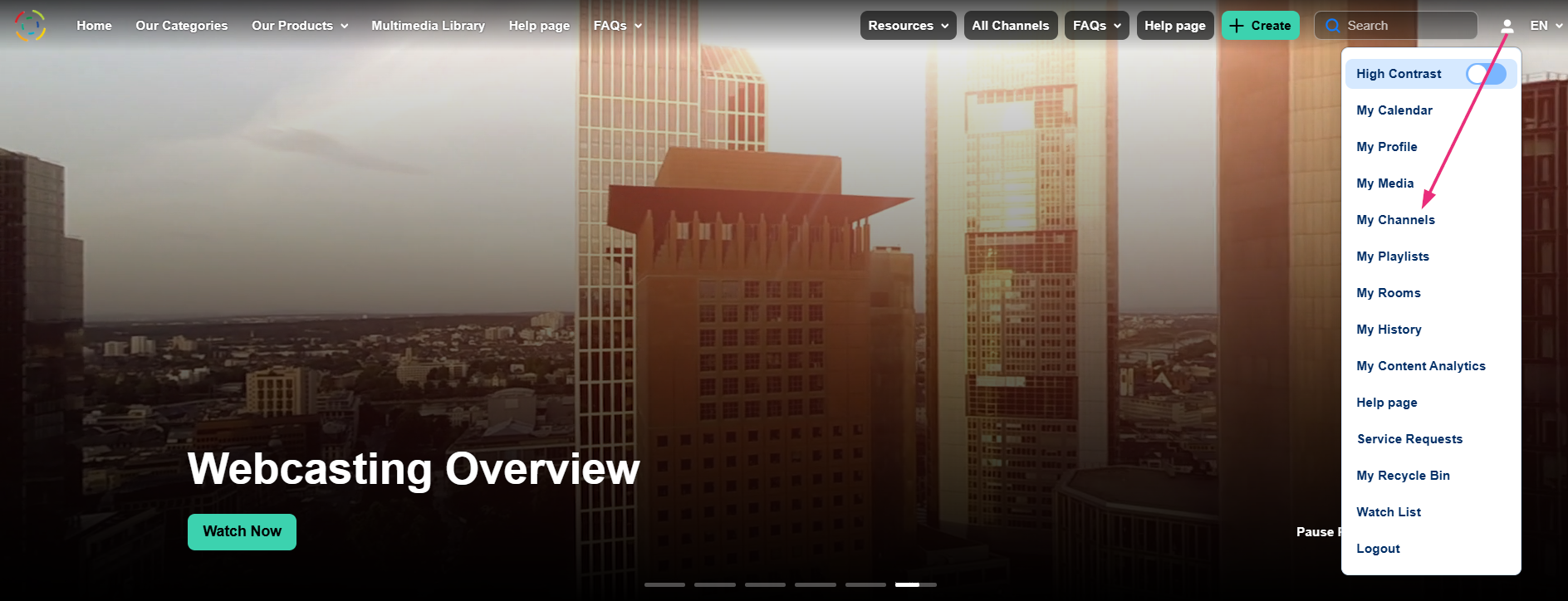 - Go to the desired channel. You can do this by selecting My Channels from the user menu.