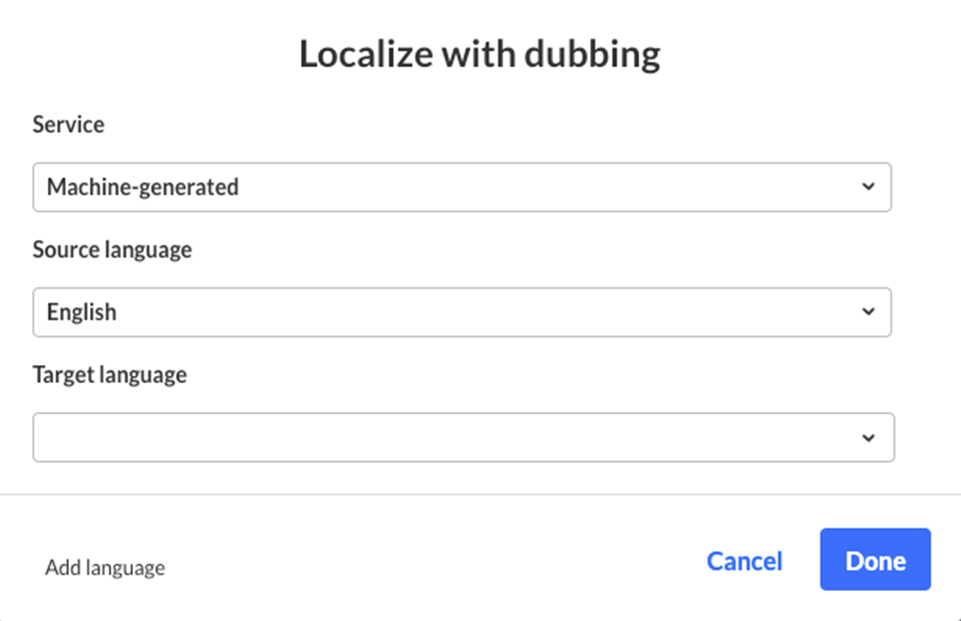 • Target language – Select one or more languages for the dubbed audio tracks.