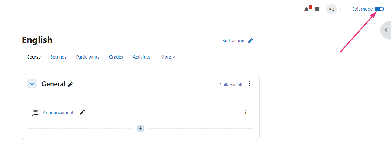 - At the top right of the page, click Edit mode to enable it.