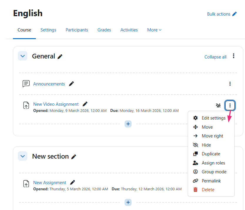 - Click the three-dot menu next to the assignment and select Edit settings.