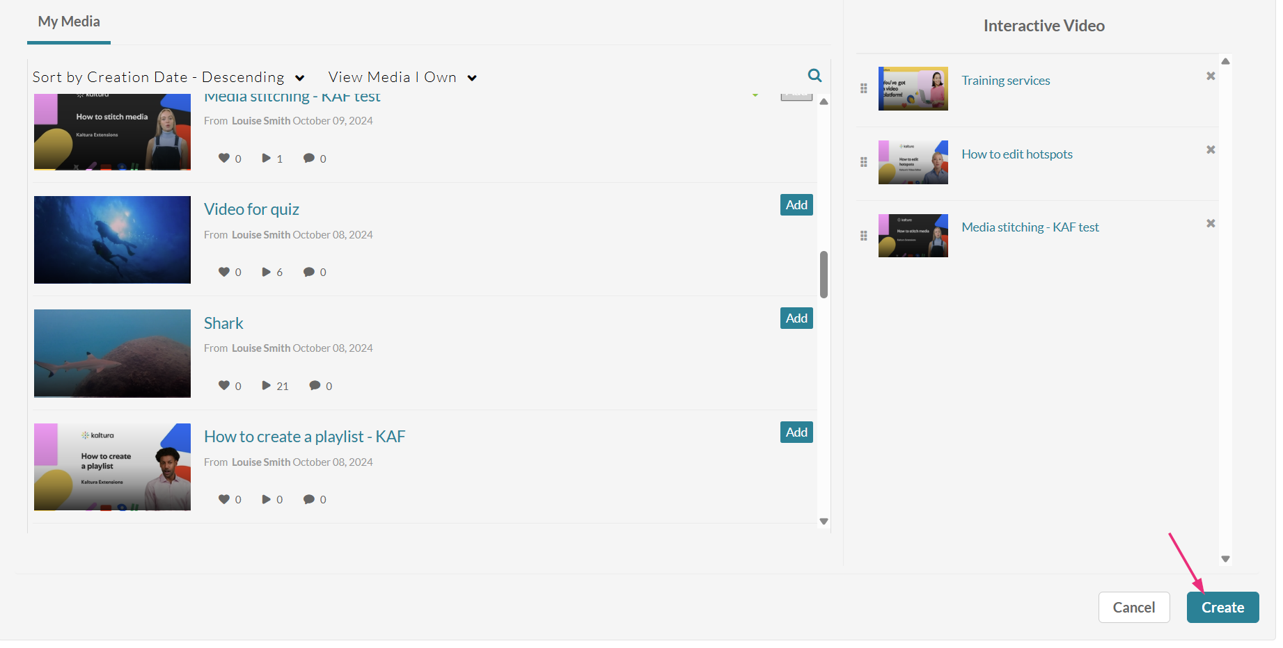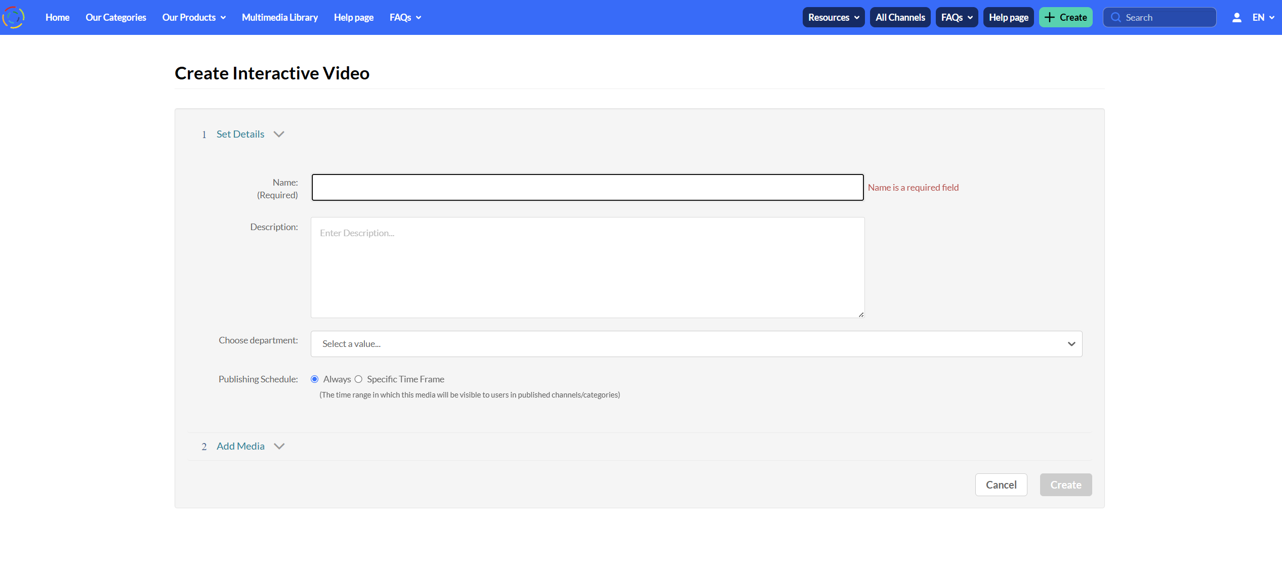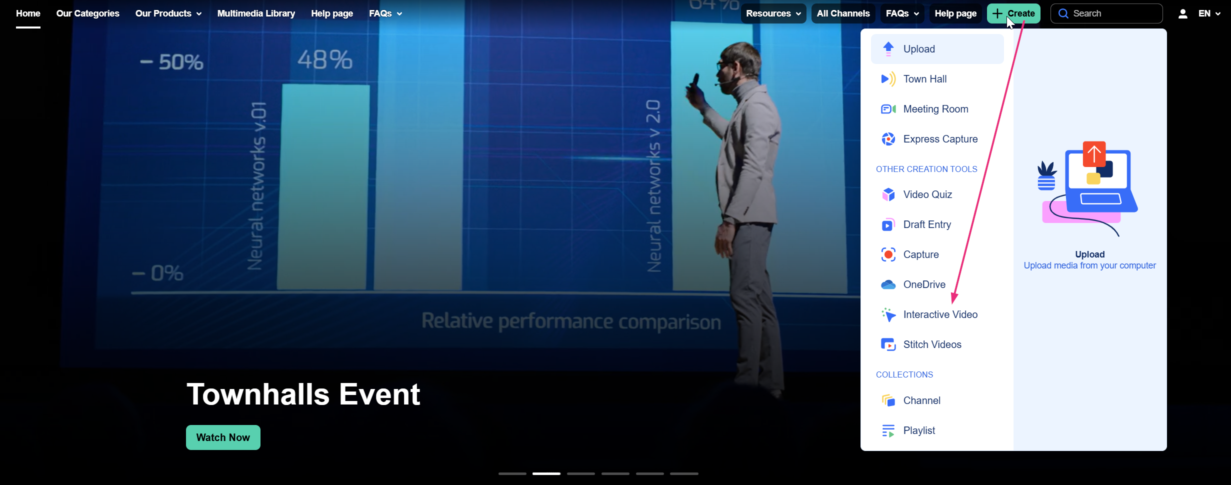 1. In your video portal, click the Create button and select Interactive Video from the menu.