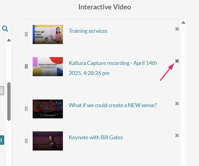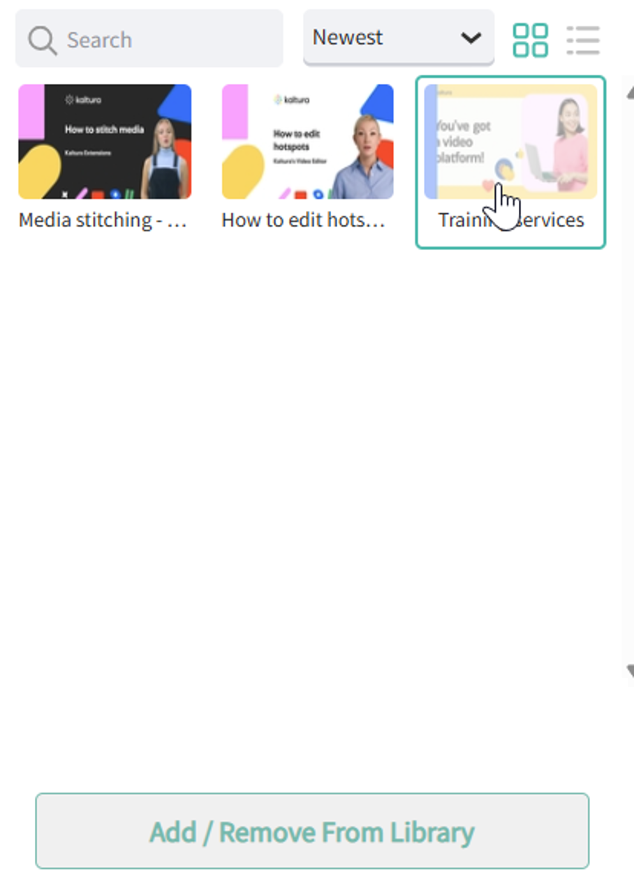 To remove a media item, click on its thumbnail, then click Remove from Library at the bottom of the panel.