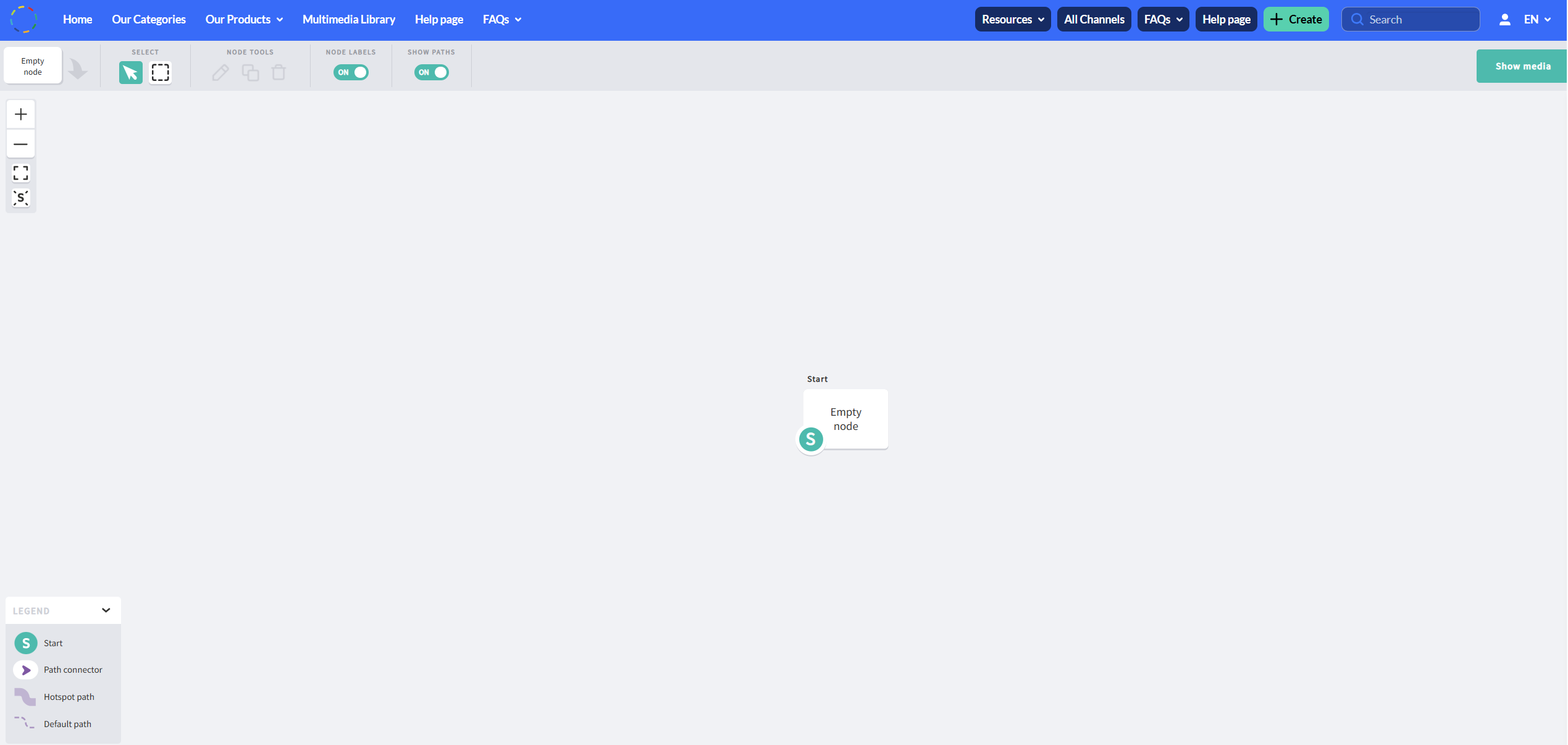 - Use the Show Paths toggle to show or hide the connection lines between nodes.