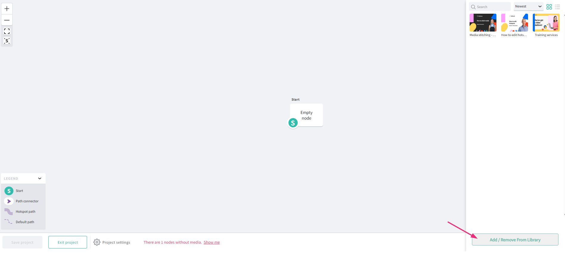 3. To assign videos to nodes, click Show Media at the top right to open the media library.