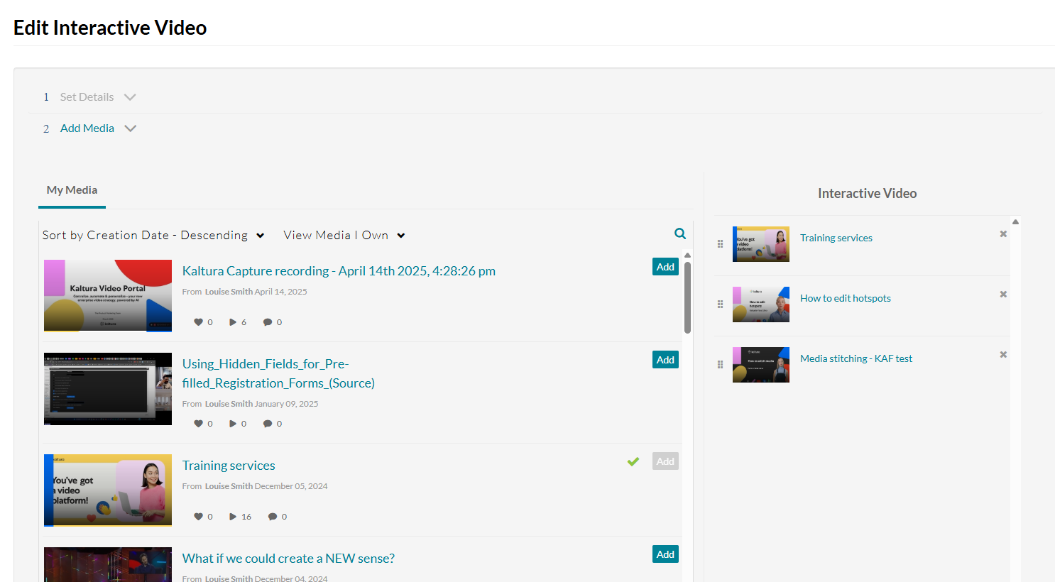 - When you are happy with your playlist, click Save to return to the video composer with a refreshed list.