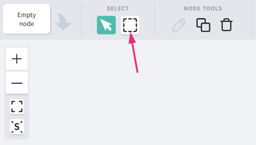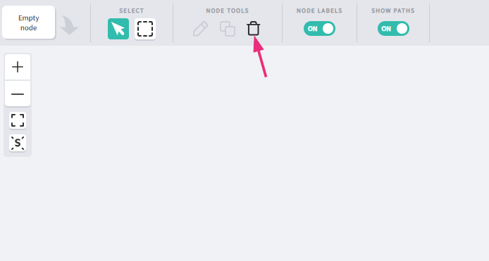 - Use the + and – buttons at the top left to zoom in and out of the node map.