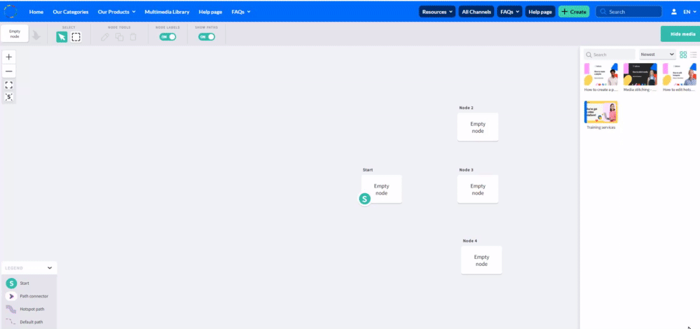 2. To create the paths of your video, hover over the right side of a node and drag the arrow to another node.