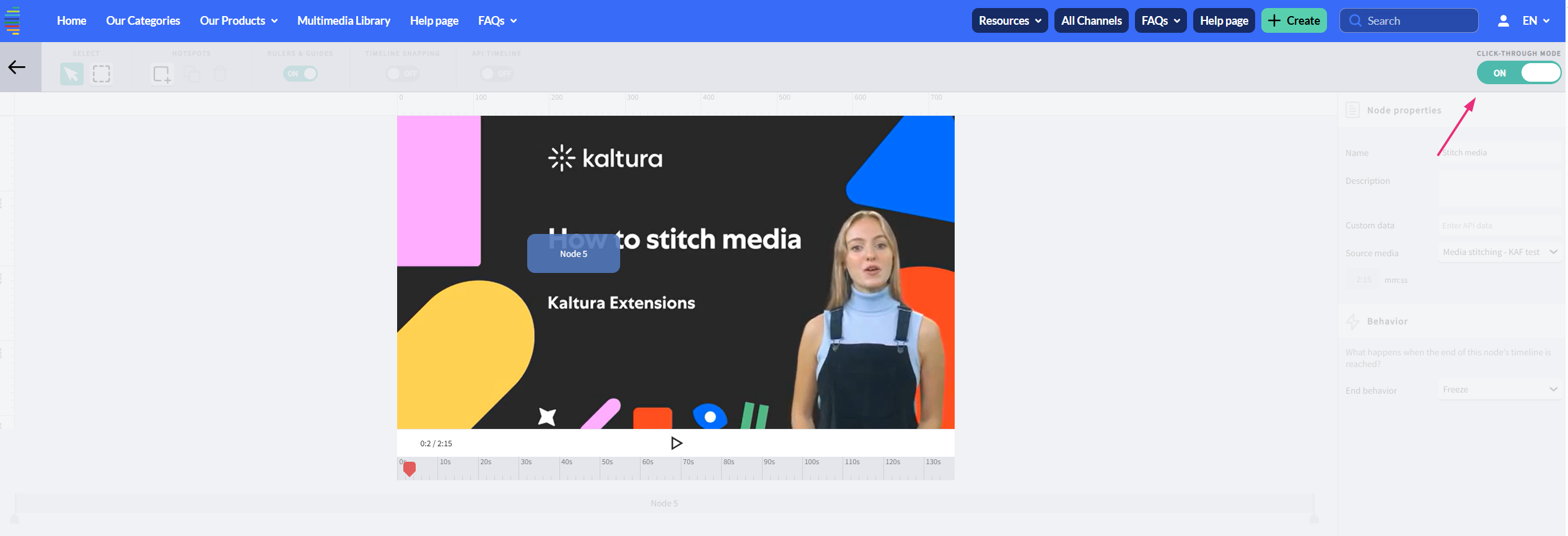 Click-through mode lets you quickly preview your video without having to leave the editor. When you turn it on (using the toggle at the top right), you can watch and click through the paths and hotspots you've set up, just like a viewer would.