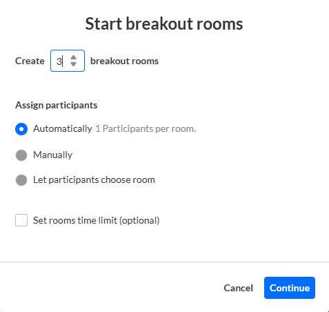 - Automatically – Participants are distributed automatically across the breakout rooms.