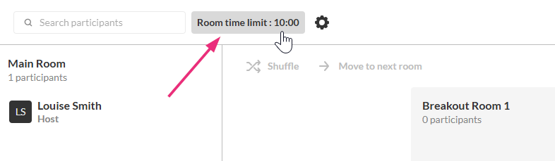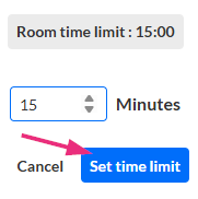 Set room time limit (optional) - Select Set room time limit to define how long the breakout session lasts. When the timer ends, participants return to the main room automatically.