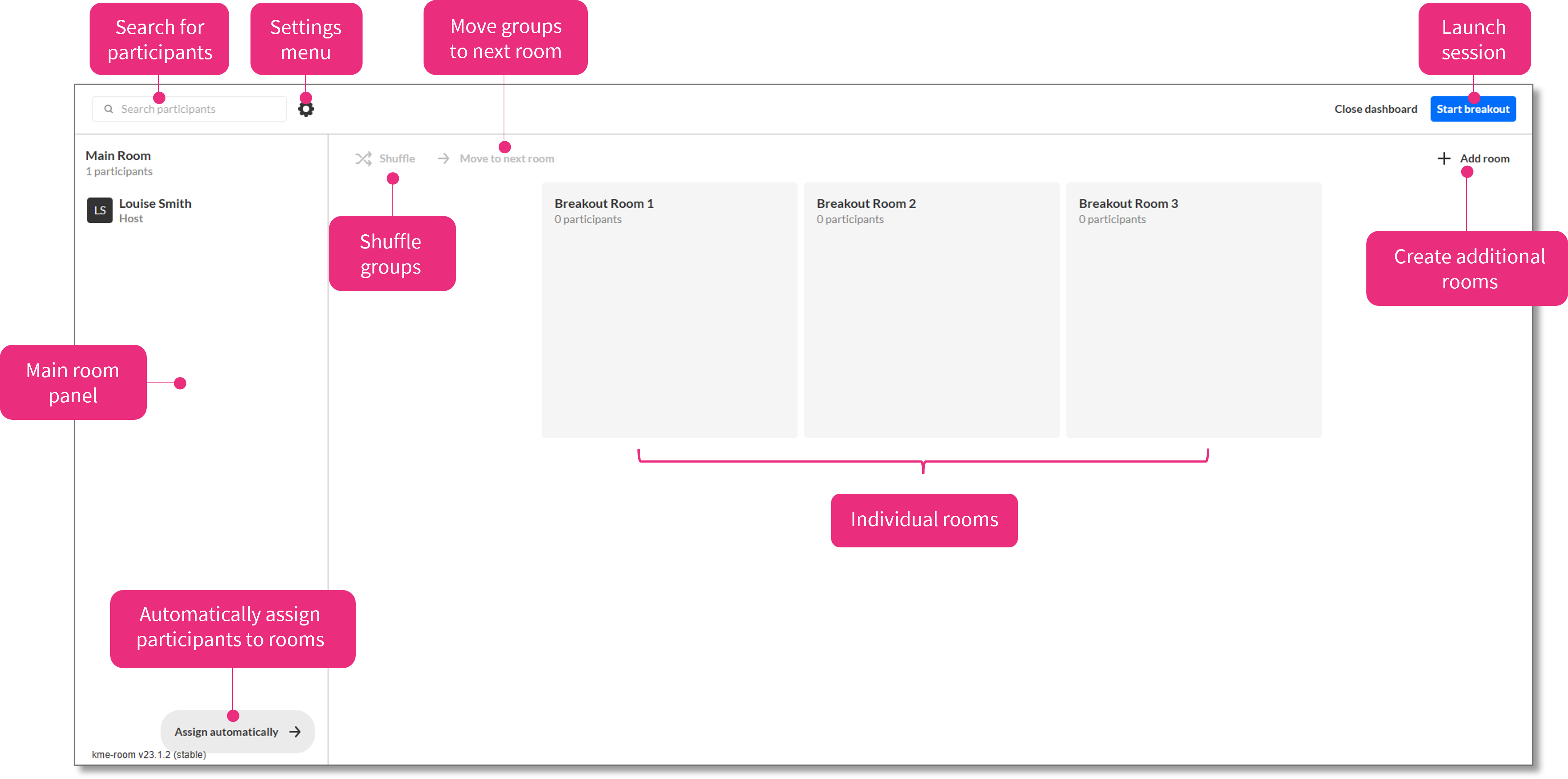 You can also click and drag participants between rooms as needed.