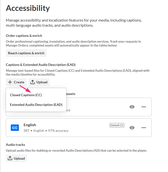 4. In the left navigation, click the Accessibility tab to display the 'Accessibility' page.