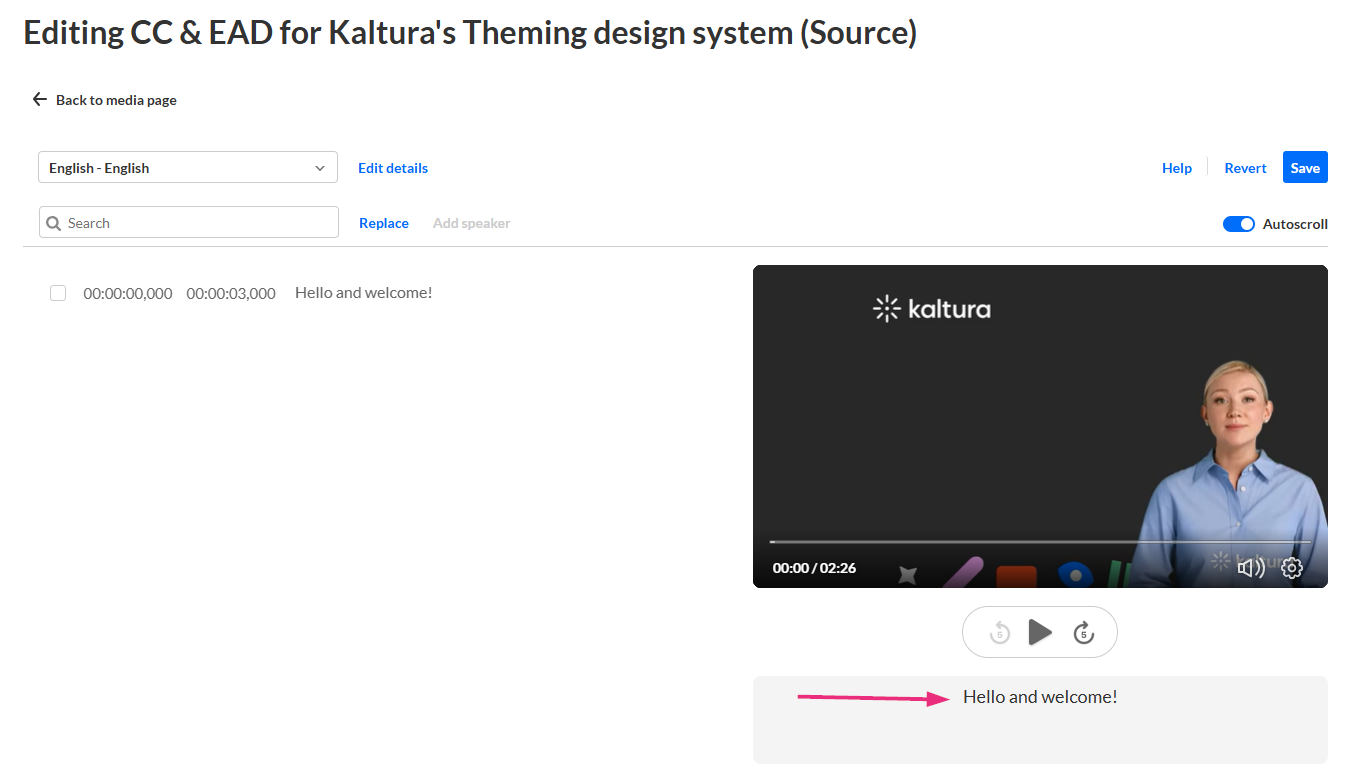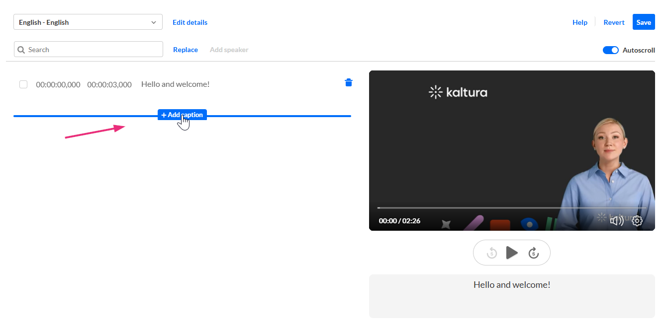 3. The caption appears under the video. Use the video player to play the relevant segment while typing.