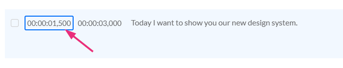 The editor uses SMPTE time format: hh:mm:ss,mmm (hours, minutes, seconds, milliseconds), allowing precise timing control.