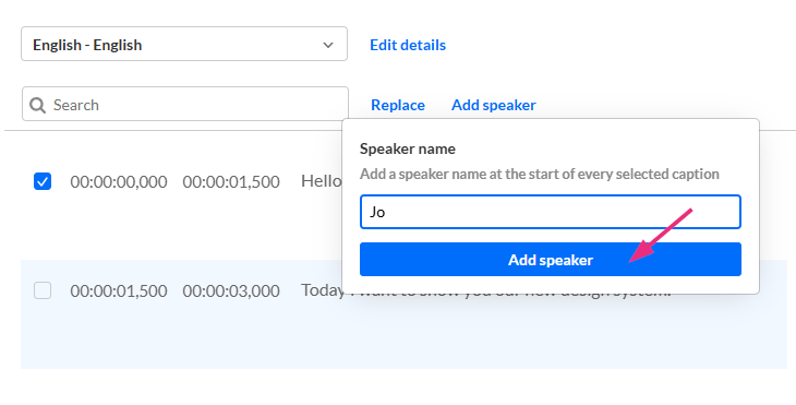 If you’ve got more than one speaker in the video, you can add speaker names to identify who is speaking.