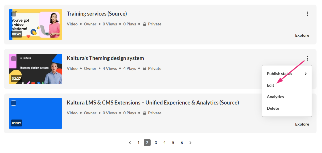 3. Alternatively, you can access the edit page from the media page by clicking the three-dot menu and selecting Edit.