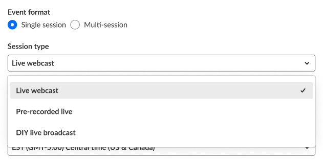 If you chose single session, choose Session type - Live webcast, Pre-recorded live, or DIY live broadcast.
